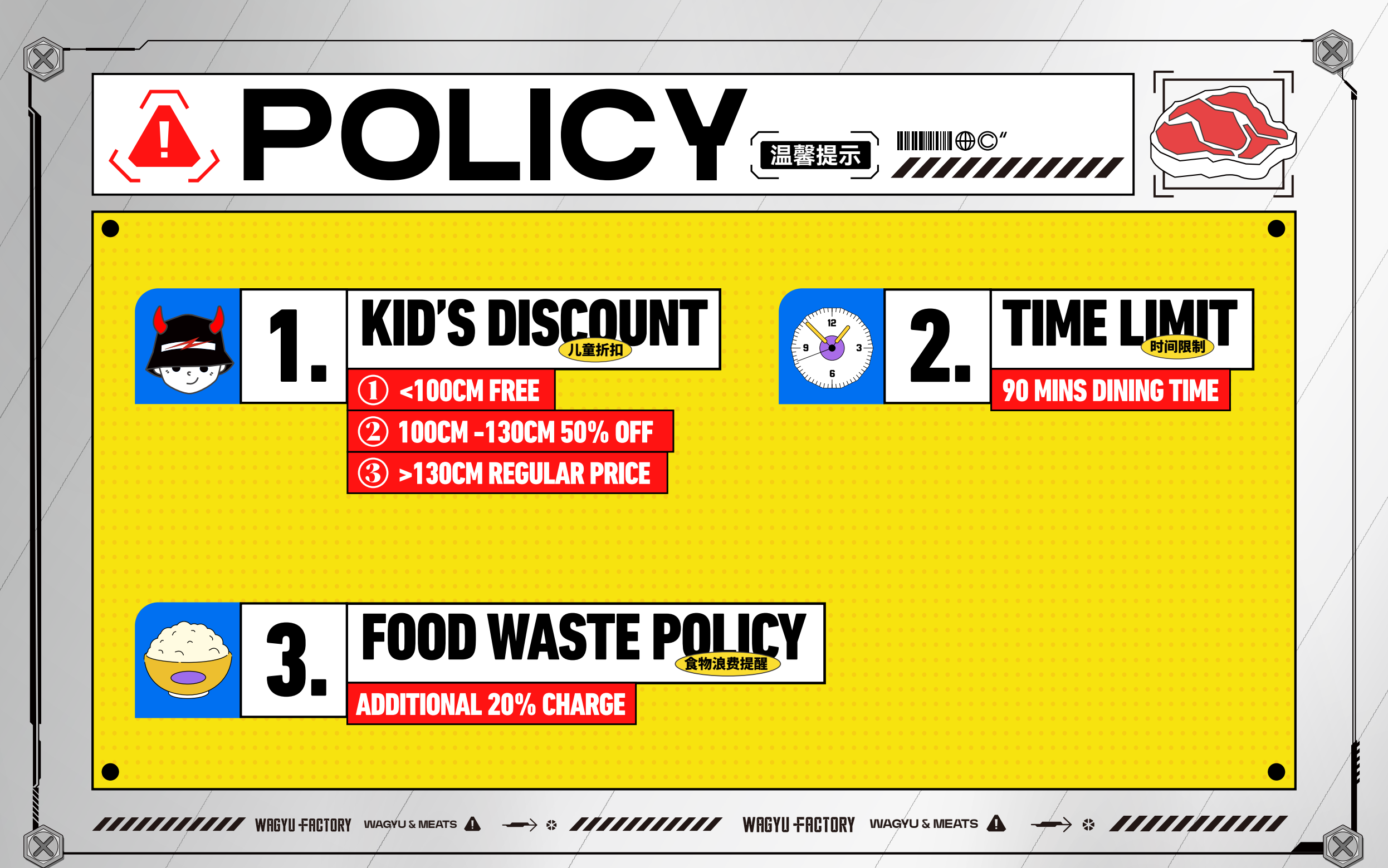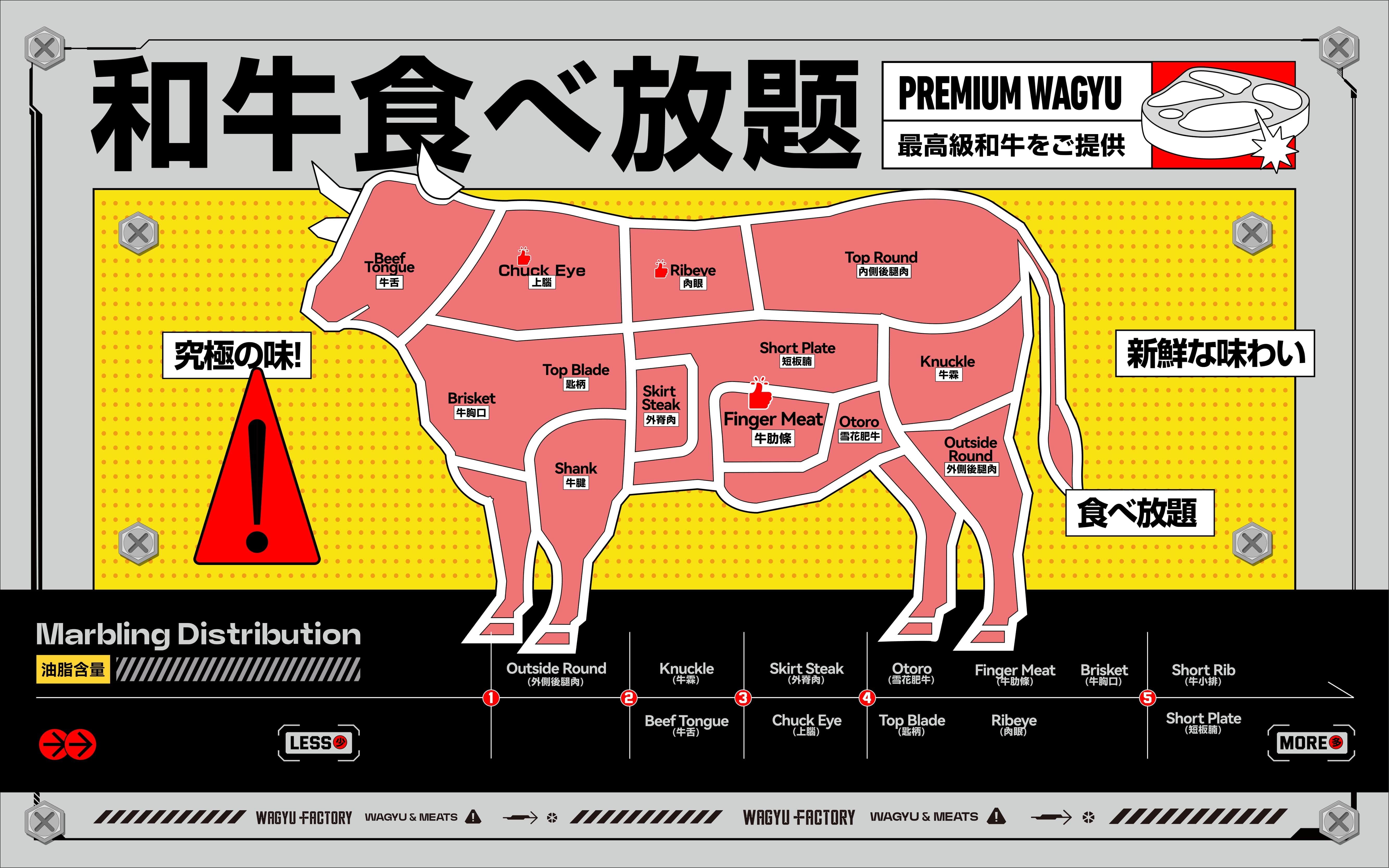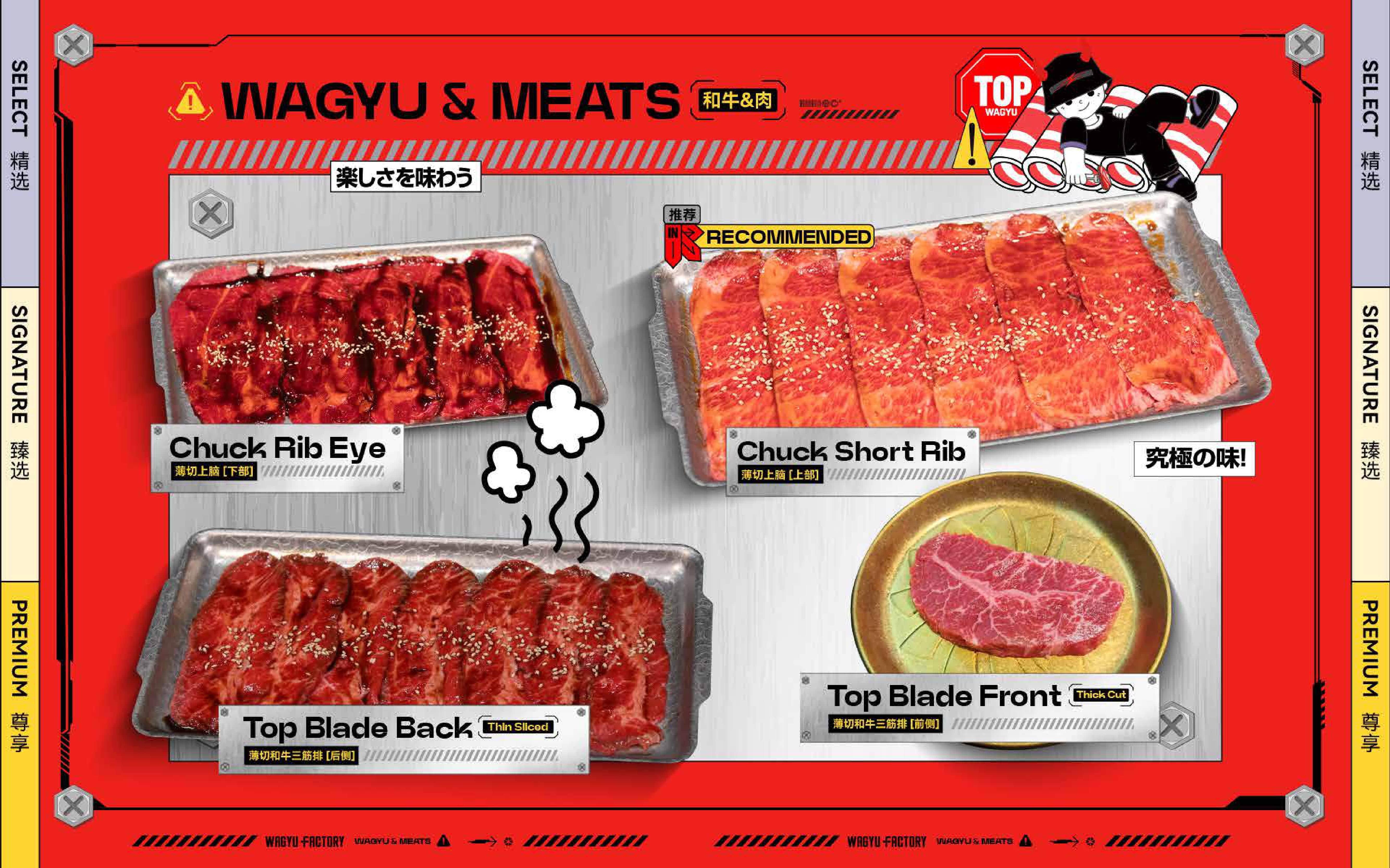 Wagyu Factory Rancho Cucamonga offers an all-you-can-eat BBQ experience. Our menu features a premium selection of Wagyu—from rich, buttery A5 Japanese Wagyu, to M9 Australian Wagyu, and our proudly raised American Wagyu from Masami Ranch—each cut showcasing its distinct flavors and textures. Guests can also enjoy a variety of fresh vegetables, sides, and appetizers. At Wagyu Factory, we deliver a flavorful, authentic, and approachable Wagyu dining experience.